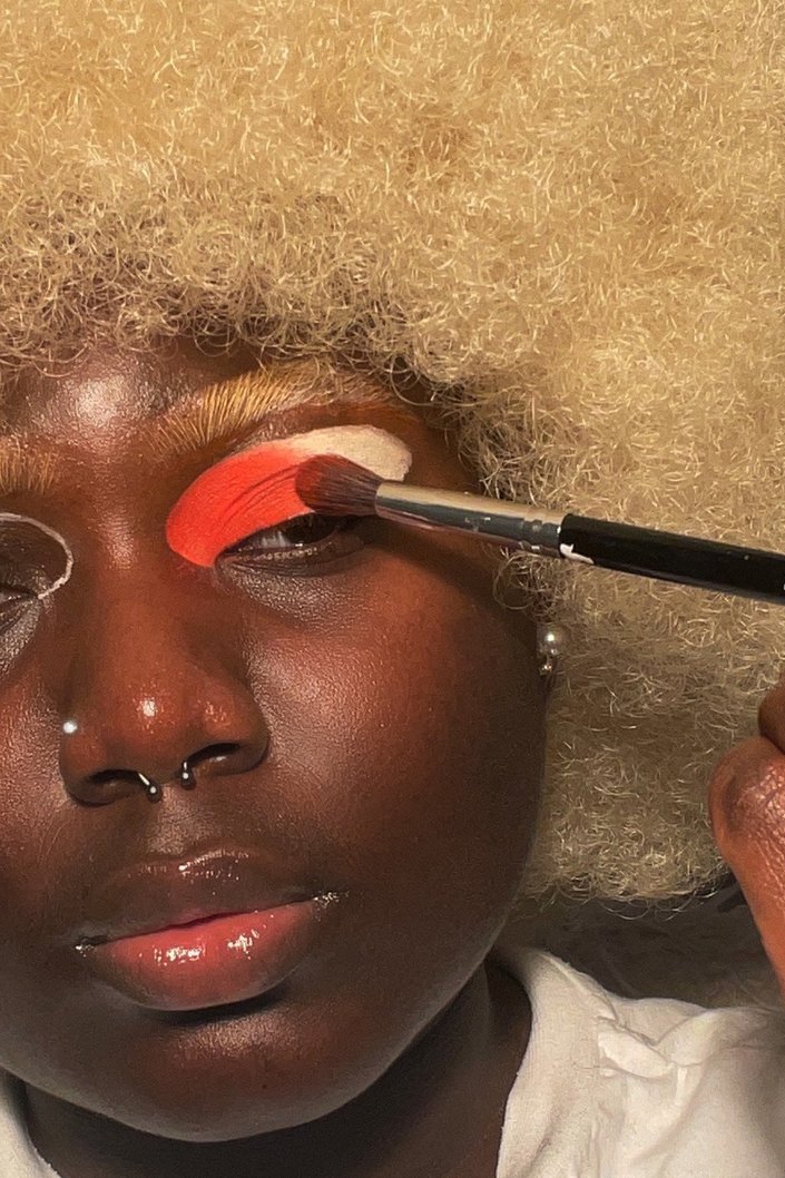 Start by using a concealer or an eyeshadow primer (we like the Urban Decay Eyeshadow Primer Potion) to create a large oval shape starting from the inner corner, up just above the crease and ending at the outer corner of your eyes. Use a small shadow brush for this step to help get a precise outline and then fill it in with the primer to help make the shadows you’ll apply next pop.