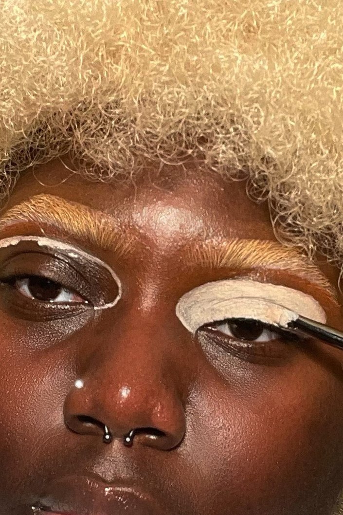 Using the NYX Professional Makeup White Liquid Liner, outline your oval shape to create highlighted accents. For this look, @pradaolic focused the white liner on her inner tear duct and inner corner of her eye.